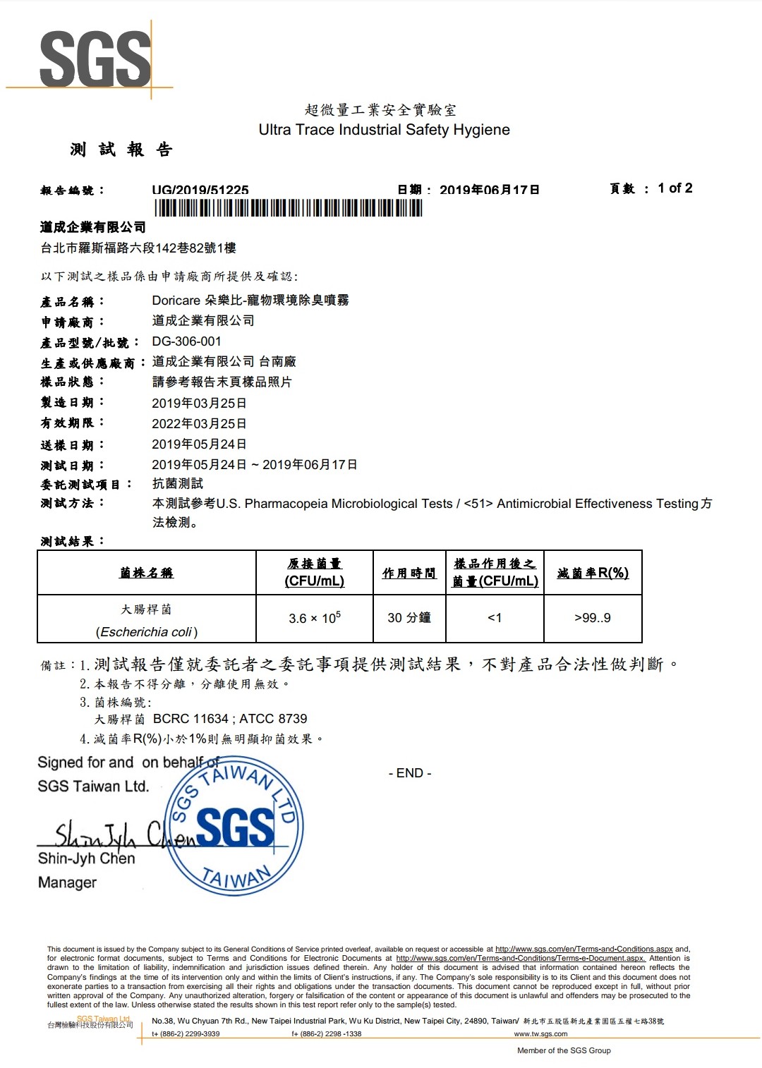 歡慶TPT通過SGS無螢光劑無防腐劑驗證